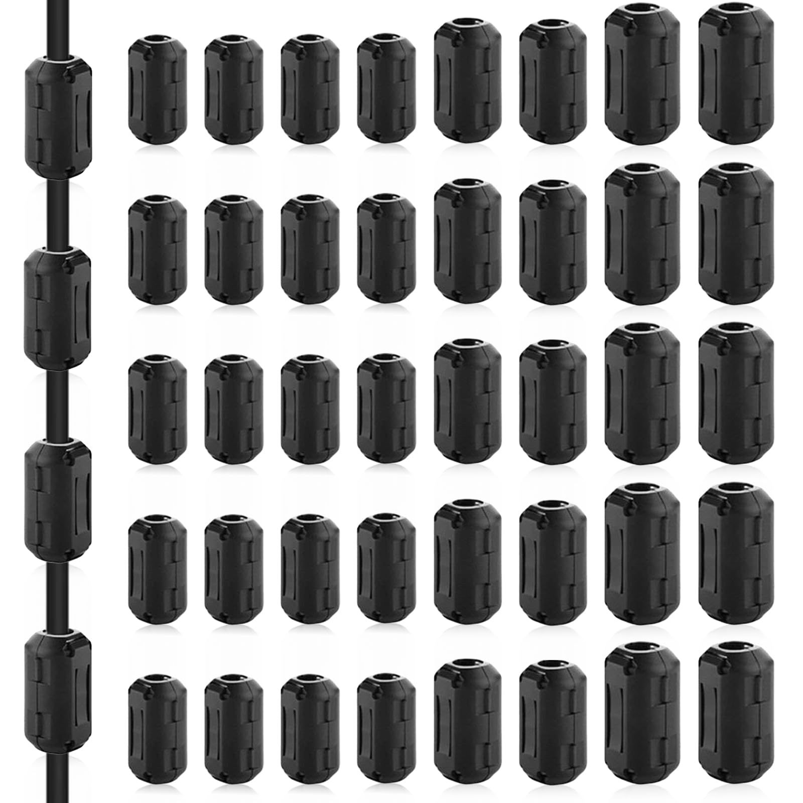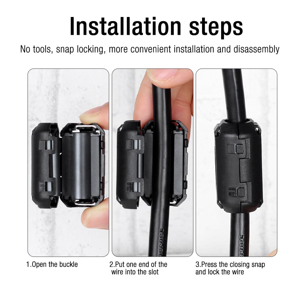 Kennst du das? Deine Kabel rauschen oder stören? Diese 40 Ferritkerne helfen dir dabei! Einfach aufs Kabel stecken - schon reduzieren sie elektromagnetische Störungen (EMI/RFI) und machen das Signal sauberer. Perfekt für USB-Kabel, Datenkabel, Audiokabel, Netzteil-Kabel, Maus, Tastatur und mehr. Es sind 4 Größen dabei: 3,5mm, 5mm, 7mm und 9mm Innendurchmesser - also für fast jedes Kabel was dabei. Jeder Ferritkern hat ein Kunststoffgehäuse und einen Ferrit-Magnetkern innen. Der integrierte Clip stellt sich selbst ein und hält bombenfest, ohne dass du das Kabel durchtrennen musst. Einfach draufklappen, festdrücken - fertig! Super einfach zu montieren und wieder abnehmbar. Mach dein Setup professioneller und störungsfreier. Mit den 40 Teilen hast du lange was davon! Probier's aus, du wirst den Unterschied hören und sehen.